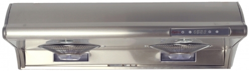 Ultra-quiet motors keep the noise level extremely low without sacrificing the fan’s power. Features a digital push button control panel, six available speed settings, time-delay off functions, and a sleek narrow frame. The fan blades are Teflon-coated and seperate grease from the airflow, depositing it into grease cups. The cups are hidden within the machine for a cleaner look, with just the handles accessible to easily dispose of the grease.