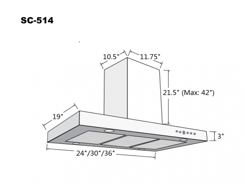 Makes a statment of strength and power as the stainless steel frame gleams under your kitchen lights. It features BAFFLE filters, tow birght halogen lights in each corner, a three speed control panel, and a quiet, powerful motor. The bold design and strong stainless steel frame encasing the fan will make this machine the focus of your kitchen. Fitted with time-delay "OFF" options up to nine minutes.