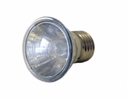 Warm halogen light bulb with screw-in tip.